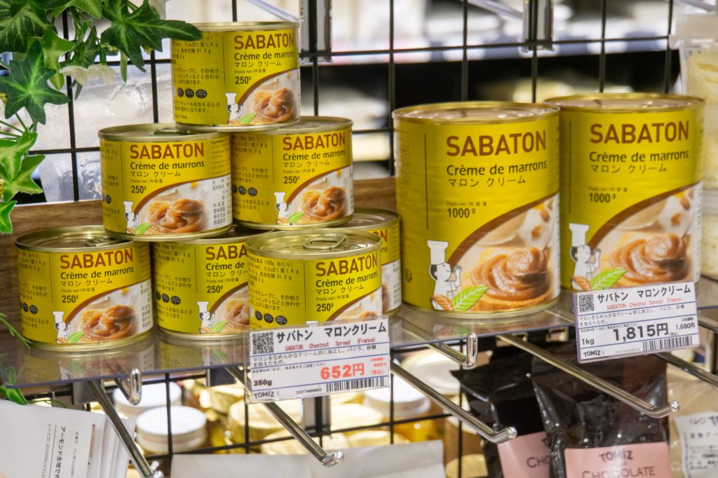 TOMIZには「これ便利!」なものもたくさん揃っていまして、例えばこちらは栗を裏ごししたものに砂糖・バニラエキスが既に加えられている「サバトン マロンクリーム」。