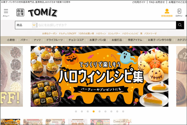 TOMIZは調理器具だけじゃなくって、製菓材料とかもめっちゃあるねん!
