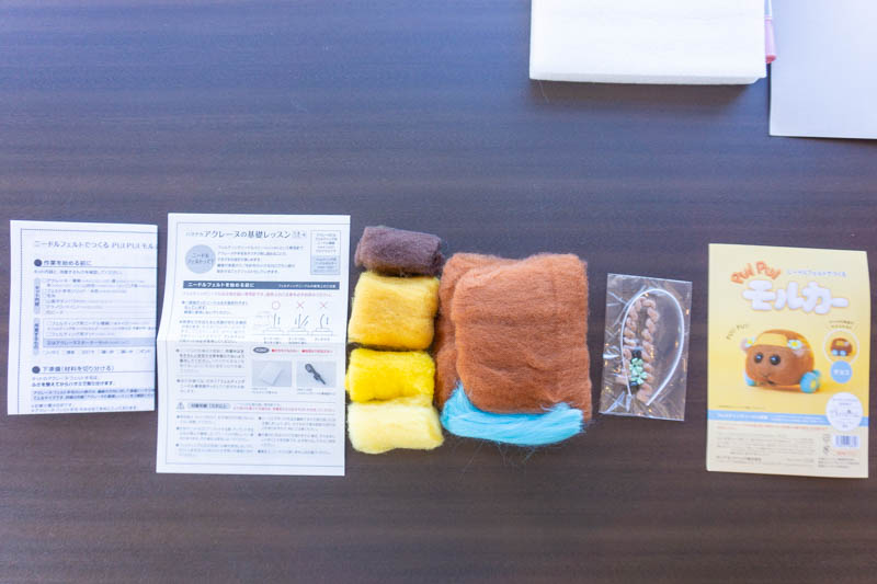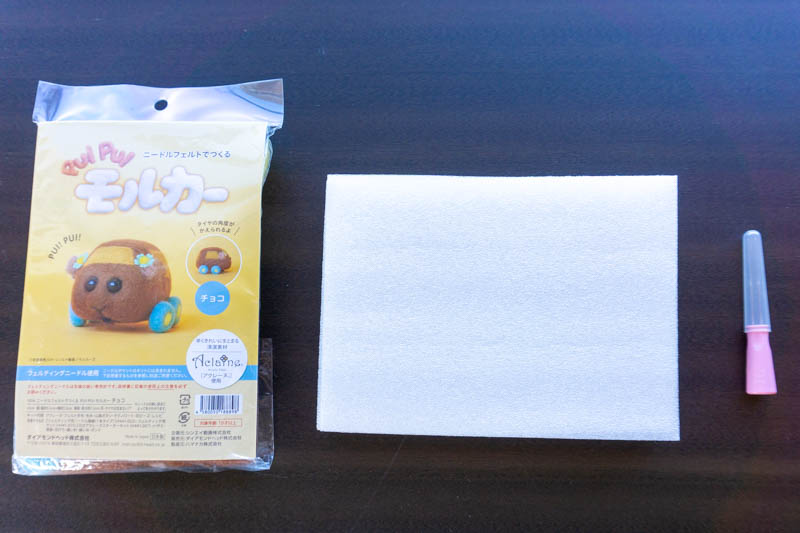 羊毛フェルトの基本セットが入ってる物(左)と好きなモルカー(右)さえ買ったらできる!