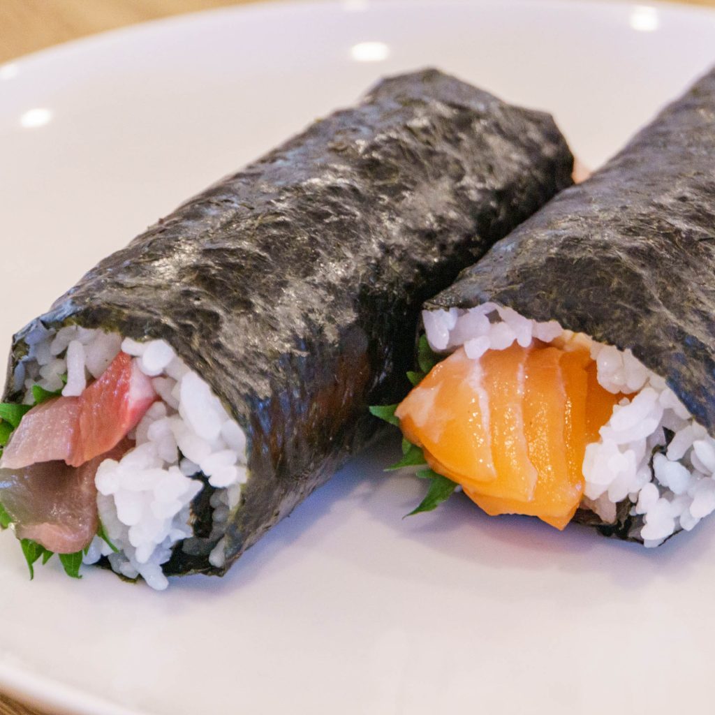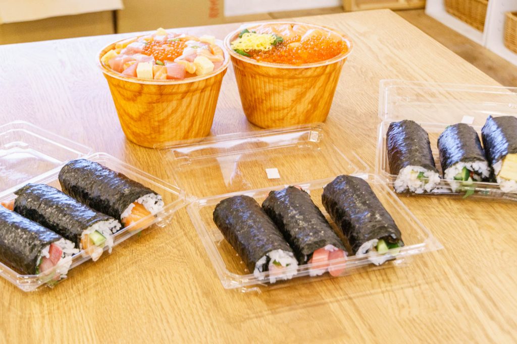 有明海産の海苔を使用した手巻き寿司をその場で巻いて販売するテイクアウト専門店。手巻き寿司のほか、すぐ近くにある「がんこ くずは店」で作ったお寿司や海鮮丼なども販売しているんだとか!