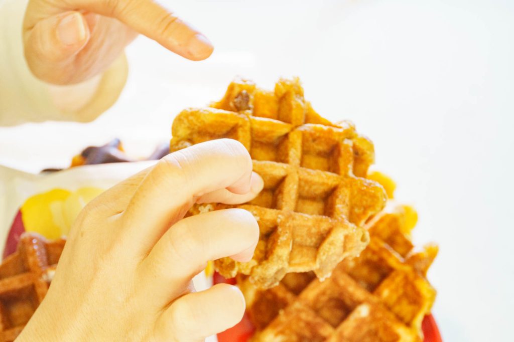 おいし〜な〜本来のスタイルで食べるワッフルはおいしい!