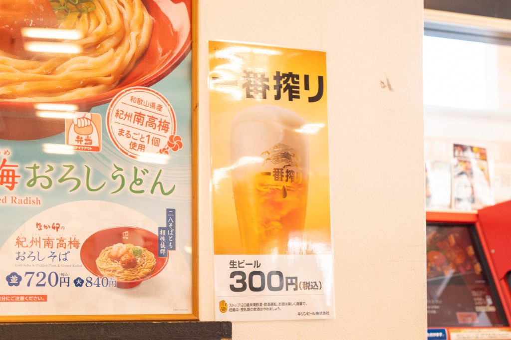 だって見てよこれ、最終手段はアルコールアタックだったんですが、ビール300円て。なか卯飲みもありかもって思う値段ですよ。駅下やし使いやすそう。