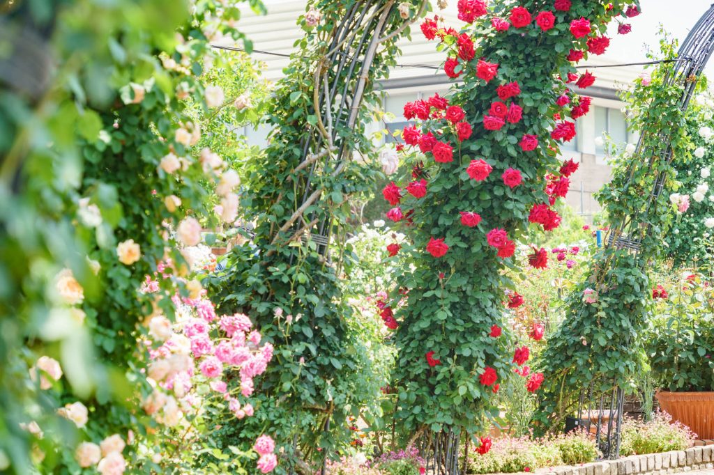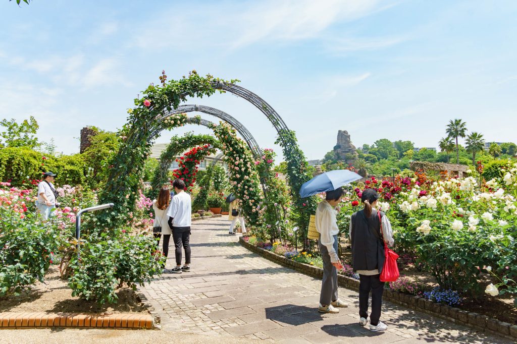 ローズガーデンには、世界各国から集められたバラの品種が600種、なんと約4000株もあるんです。5月と10〜11月には見頃を迎え、パーク全体がバラの香りと彩りに包まれます。