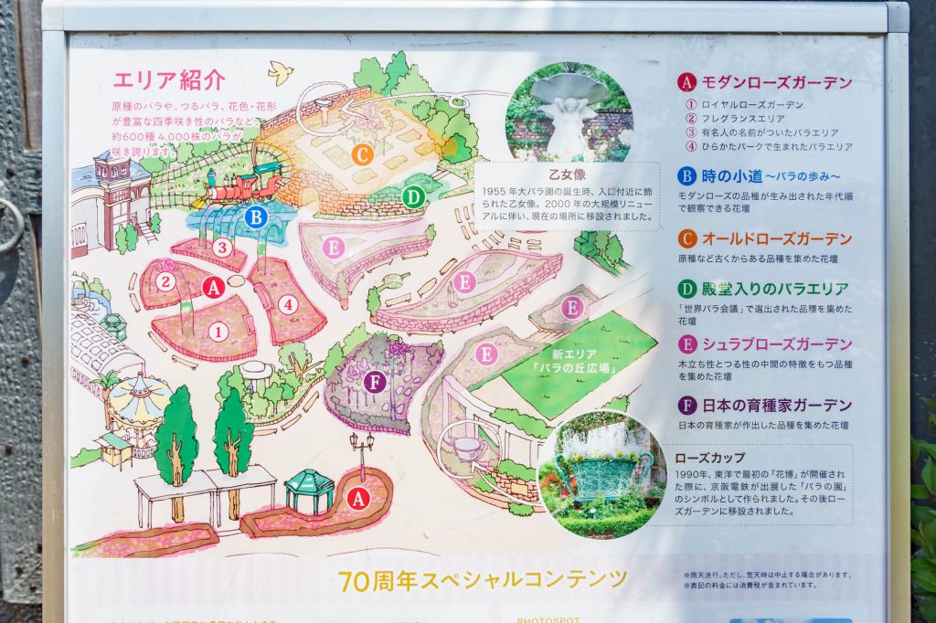 ひらパーのローズガーデンは、1955年に開園した歴史あるバラ園。今年はちょうど開園70周年ということで特別な催し物もいろいろ行われています!