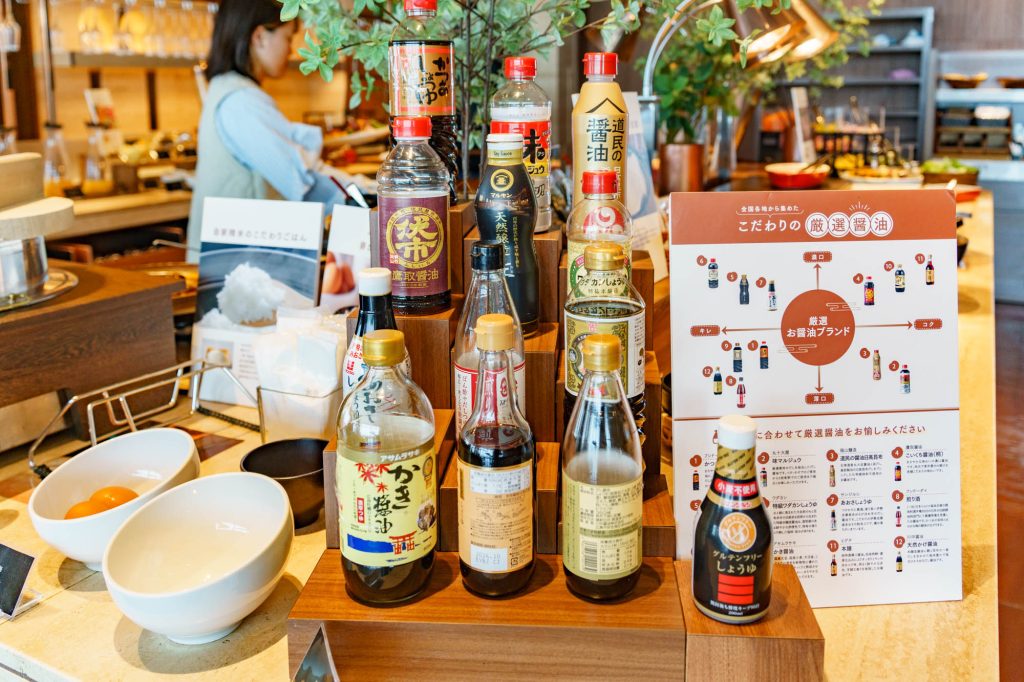 そして、ひとつ上の写真でもご紹介しているとおり、こだわりの厳選醤油もズラリ!新鮮な卵と炊きたてご飯で特別な卵かけも◎