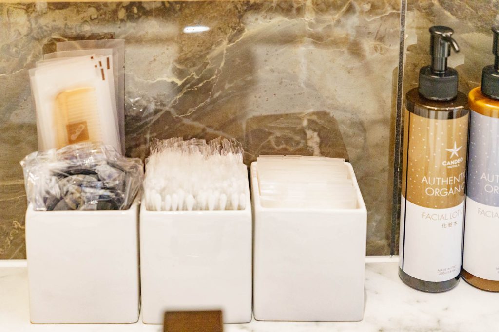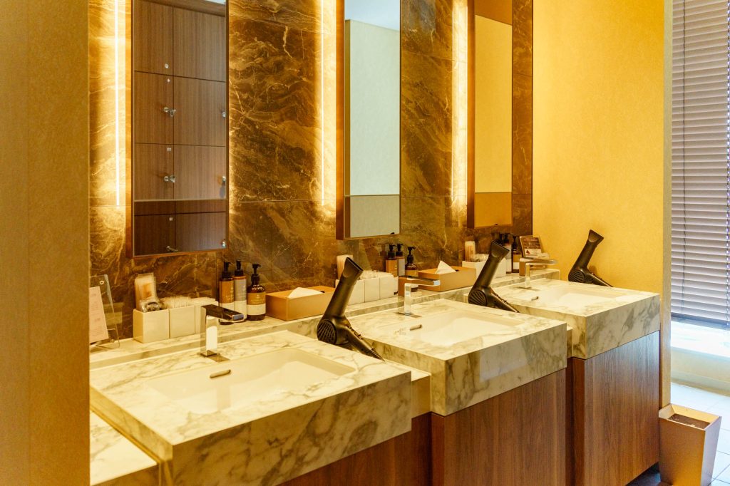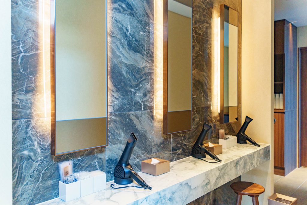高級感のある洗面台。アメニティの充実っぷりもさすが!ドライヤーも完備です。