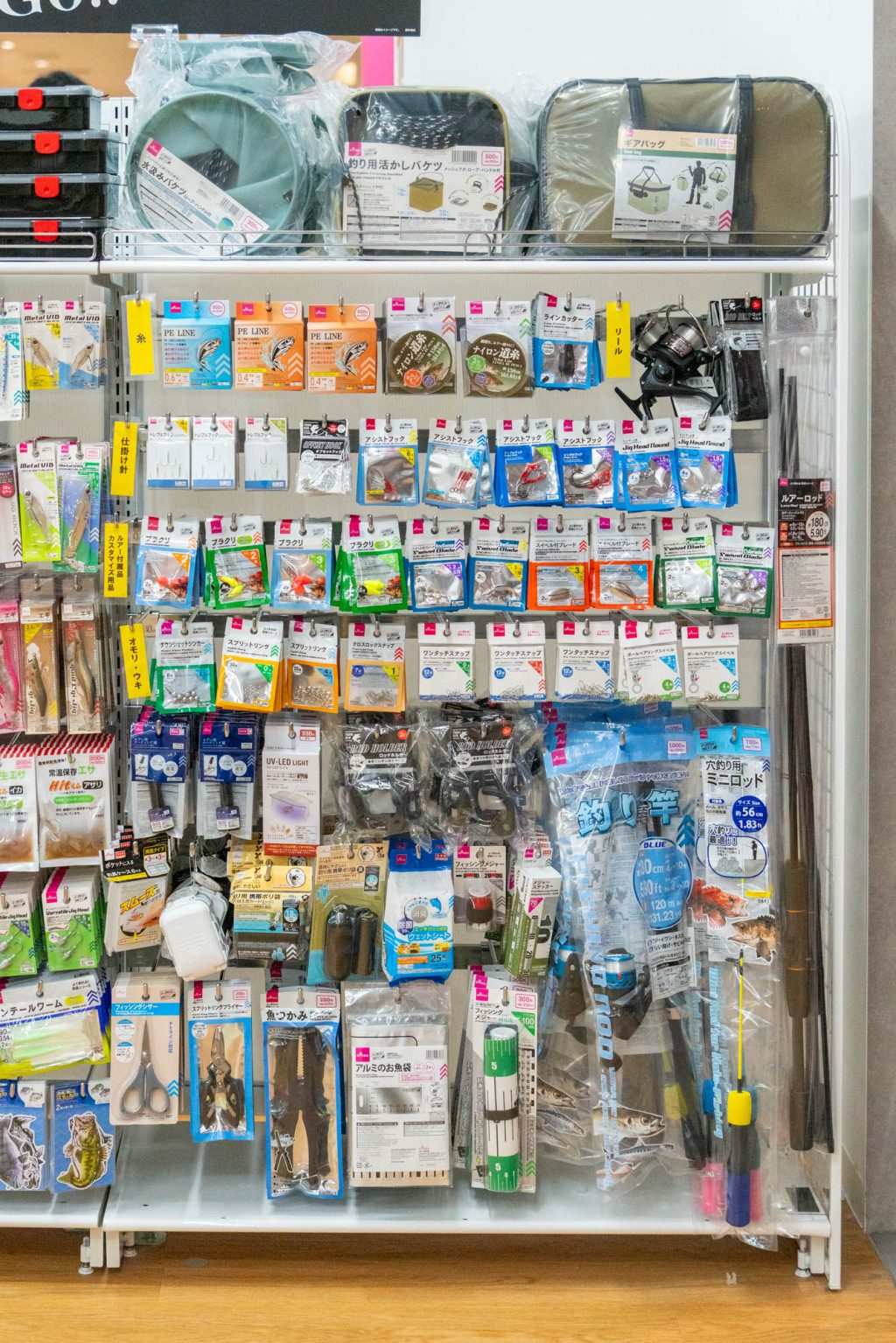 参考に棚全部の写真を置いておくので、実際に釣具は何が売っているか気になった方はズームしてどうぞ!