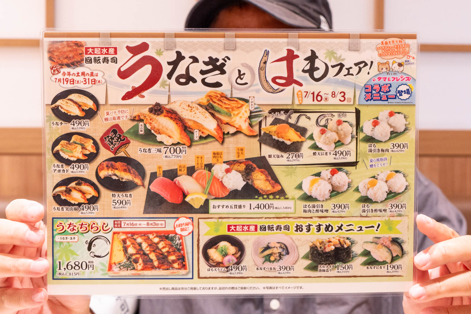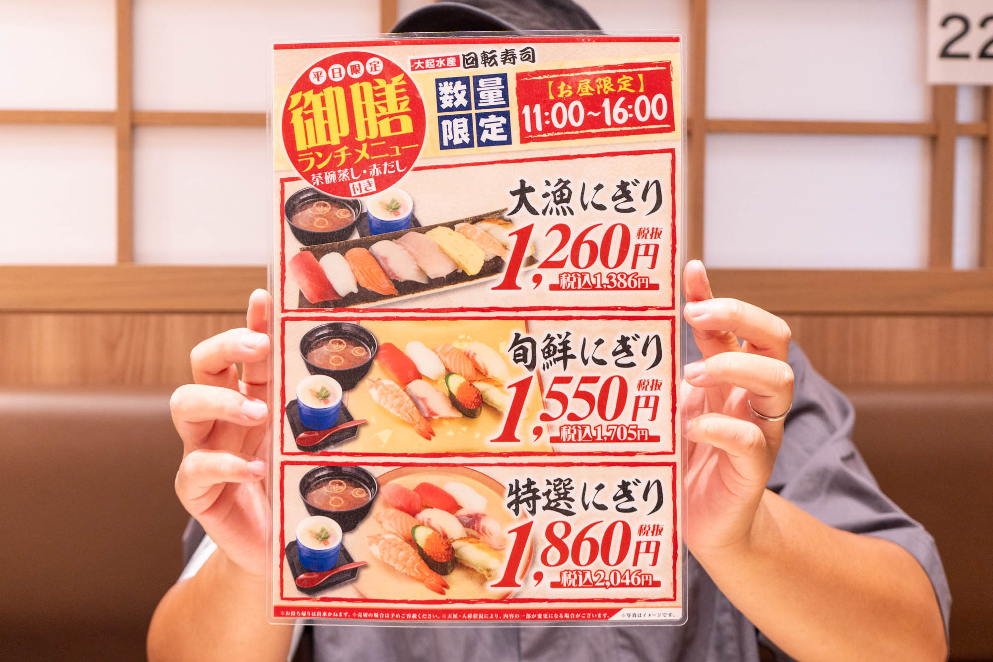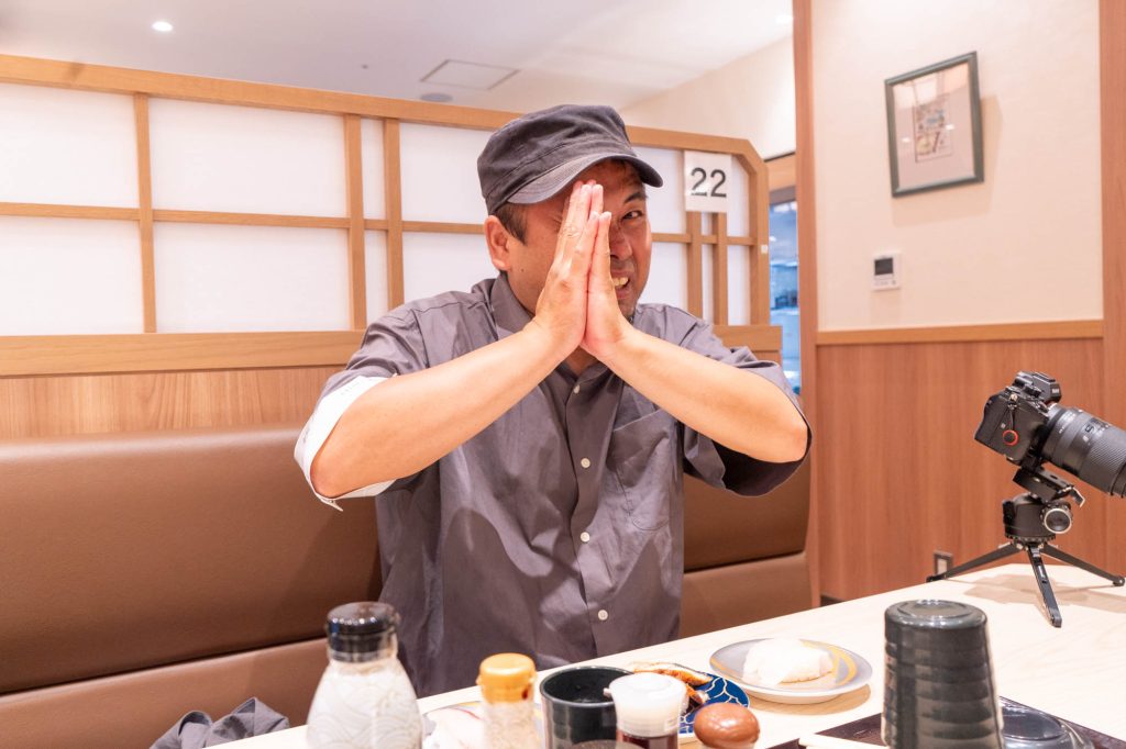 「今日は『大起水産回転寿司 枚方モール店』の人気TOP10を当てるまでいっぱい食べまくる企画です!今回予想をしてもらうのは大起水産によく行くすどんさん。当てるまで2人とも帰れないので、よろしくお願いします!」