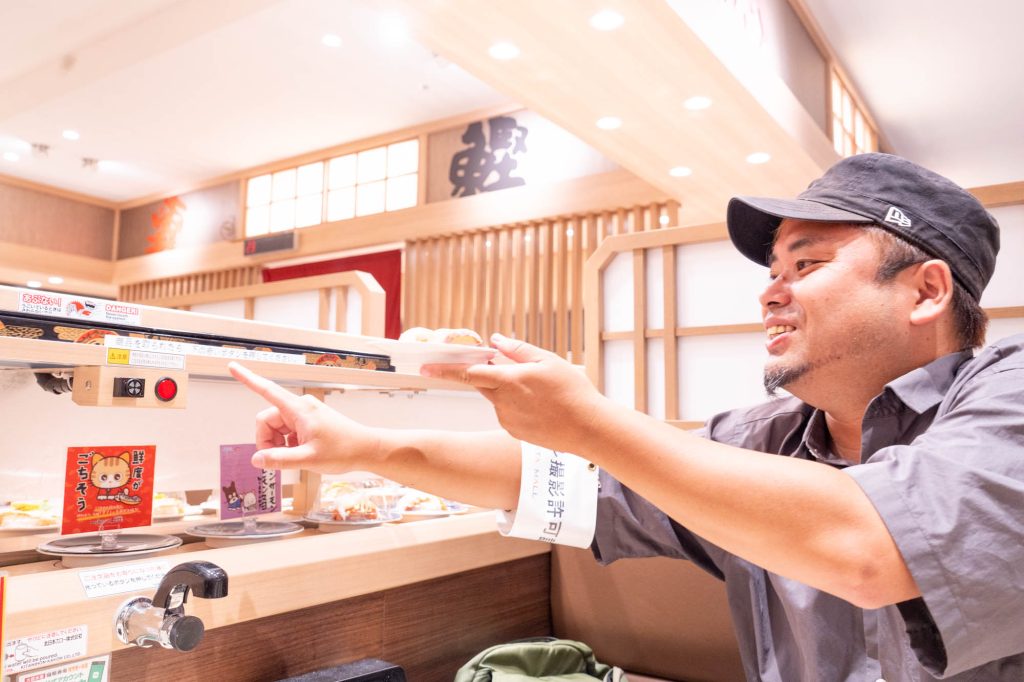 「大起水産の好きなところのひとつに、衛生面にも気を使いながらお寿司が回ってくれてるってところがある!やっぱり見て選べるのも嬉しいなって。」