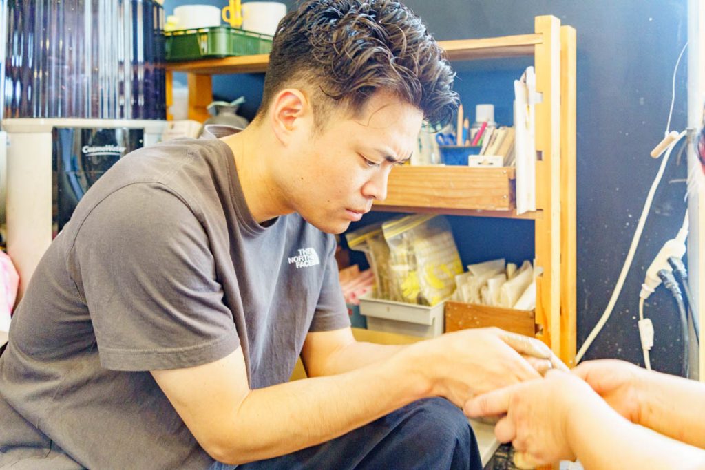 といっても力加減が初心者にはなかなか難しいんですが、先生がサポートしてくれるんで大丈夫!