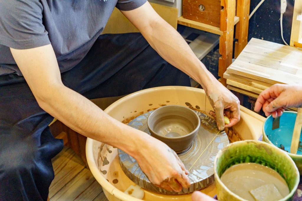 形が完成したら、ろくろから離して移動させます。