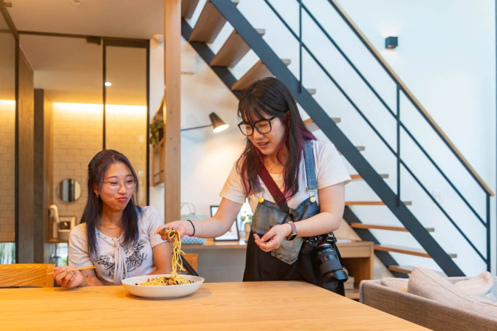 ということで誰も僕のパスタ論に興味がない、ということで食事役のひまわりは探検へ。ここはモデルハウス2階にあるスタディカウンター。
