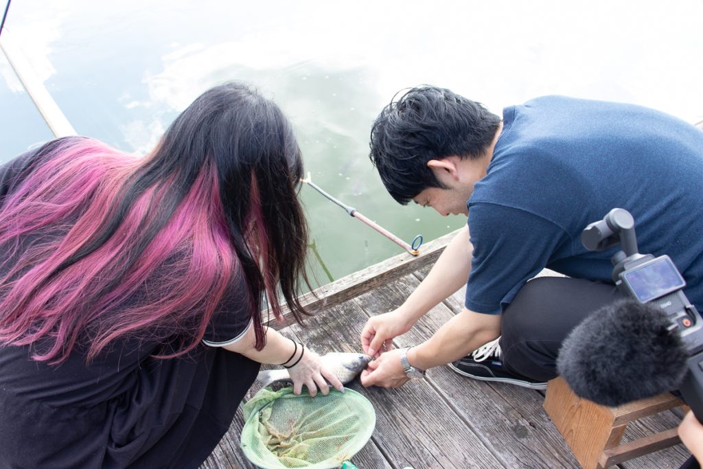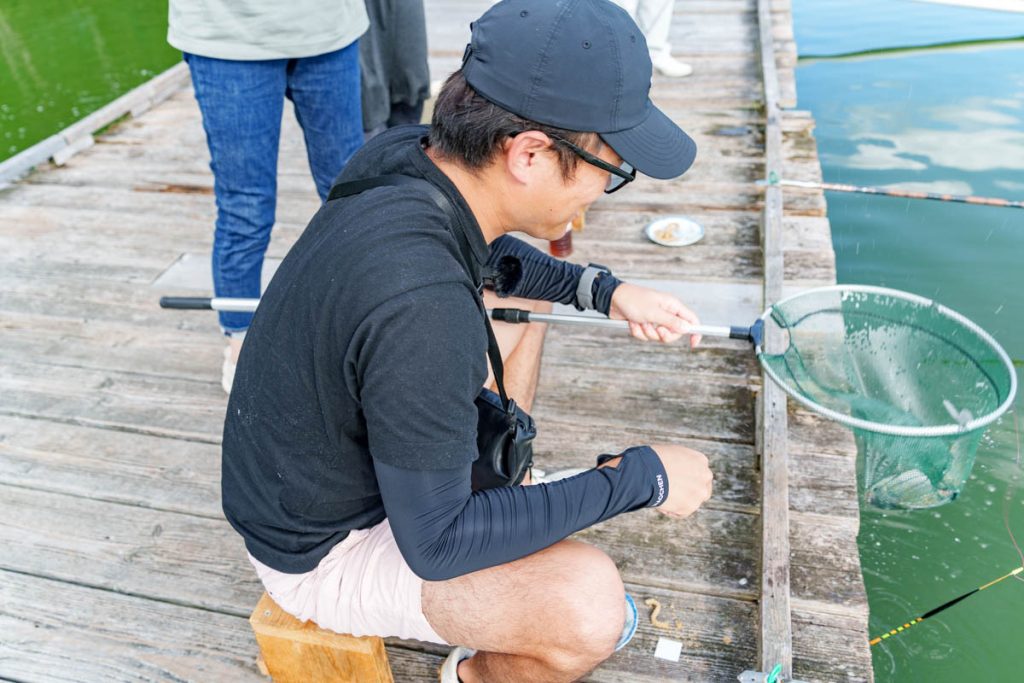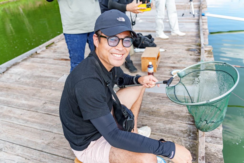 唯一の現役釣り人・みやざきさんのみ全然釣れず0匹。「さすがゼロホームですね!」と高火力で煽っていくスタイルです(←)。