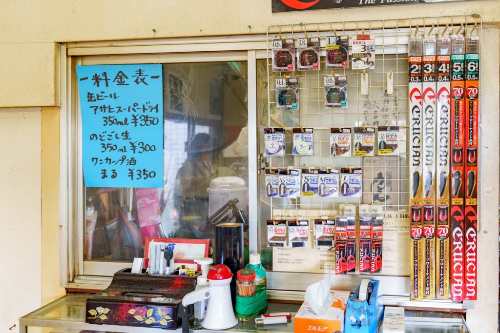 ちなみに受付では釣り針などのアイテムやお酒の販売も。