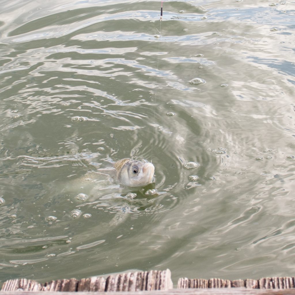 実際、釣り堀のヘラブナちゃんたちは釣られ慣れているというか警戒心も強い!うまいことうどんだけをつついて食べて、針には全然引っかからずに大苦戦!実質、ヘラブナと自分との戦いでもあります。