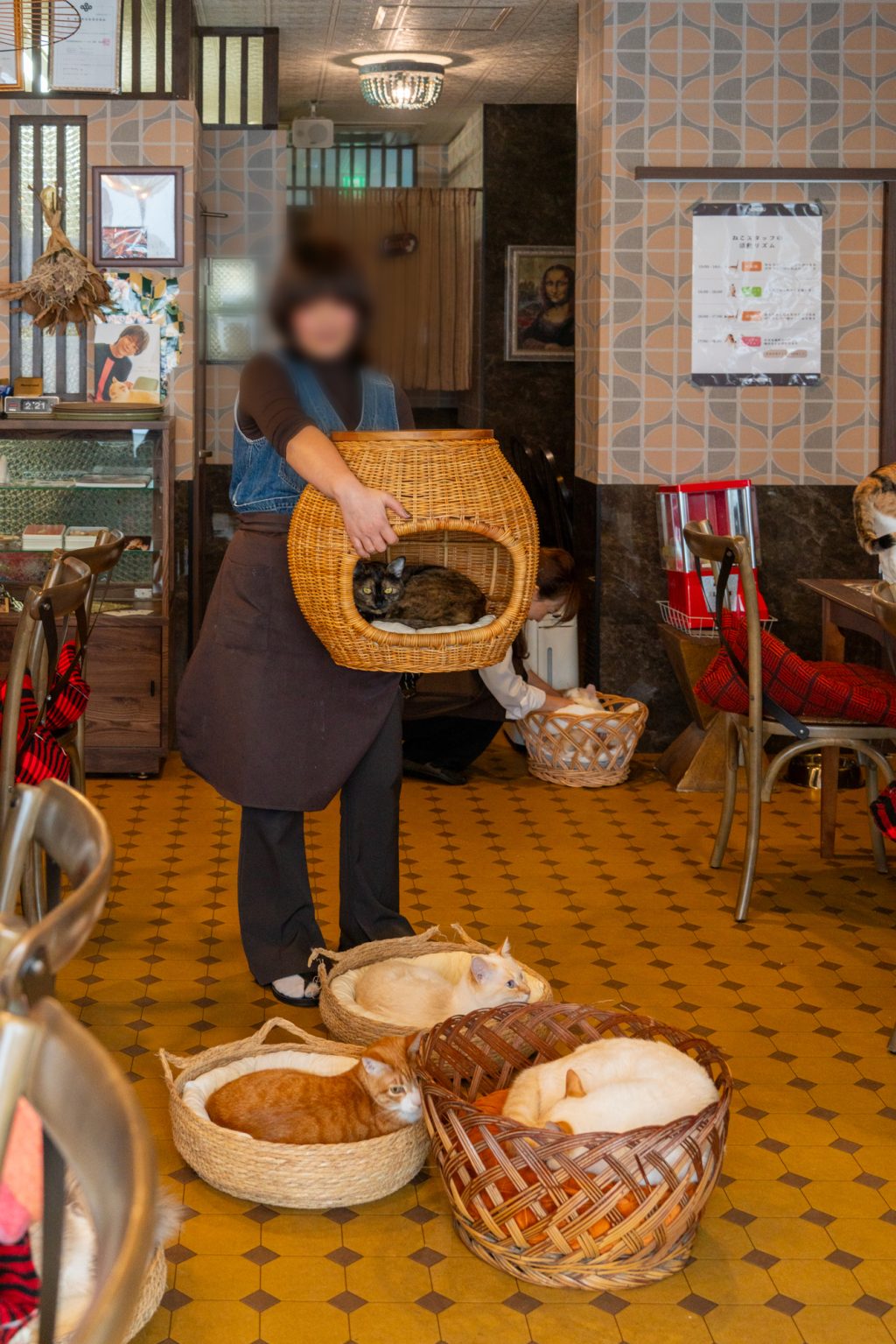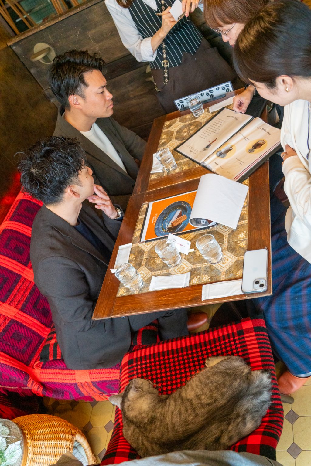 そんな「猫喫茶 ネコブ」で今回行う企画は……待って、手前の赤い座布団の席、