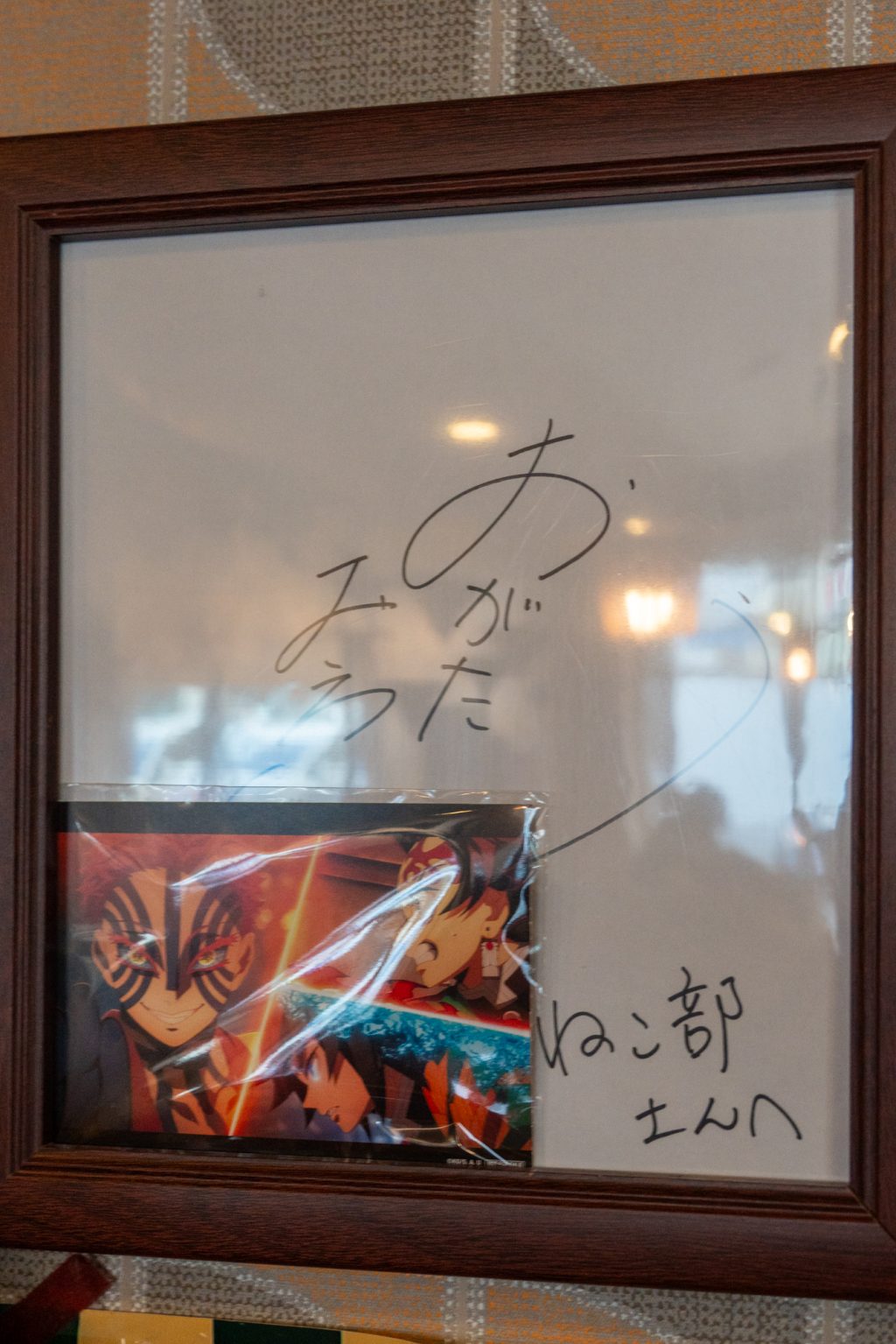 店内にはサインがいくつかあり、これはそのうちの1つである、アニメ版・鬼滅の刃の作画監督さんのサイン!お知り合いの方だそうで!