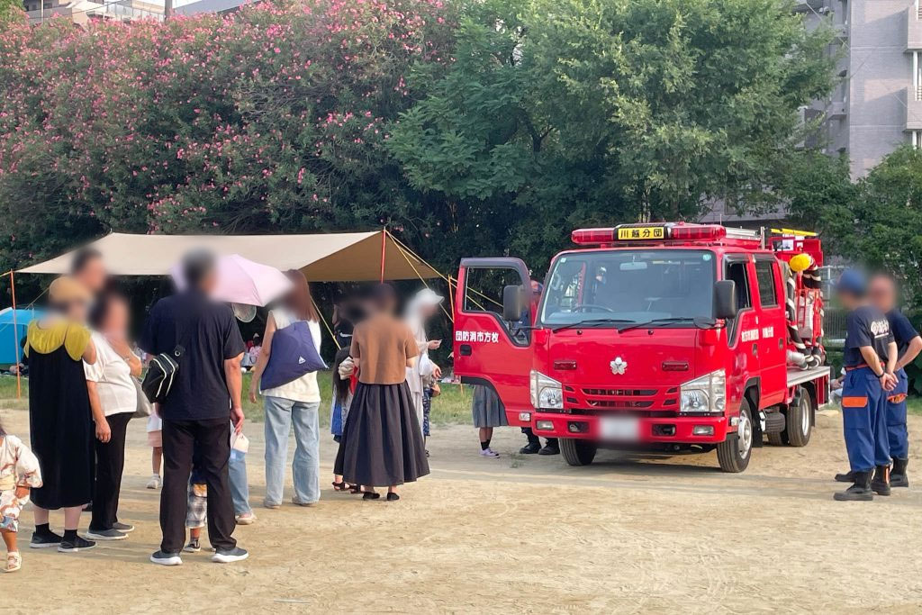 こちらでは、消防車と一緒に写真を撮るイベントも。行列になっていました。