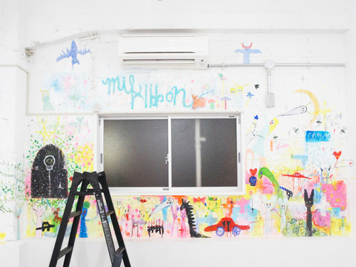 壁には、オープン記念イベントのときに描かれたライブペインティングの作品が!パステルカラーがキレイですね!