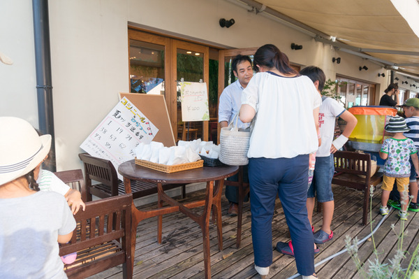 木陰のテラスで「いらっしゃいませ〜」
