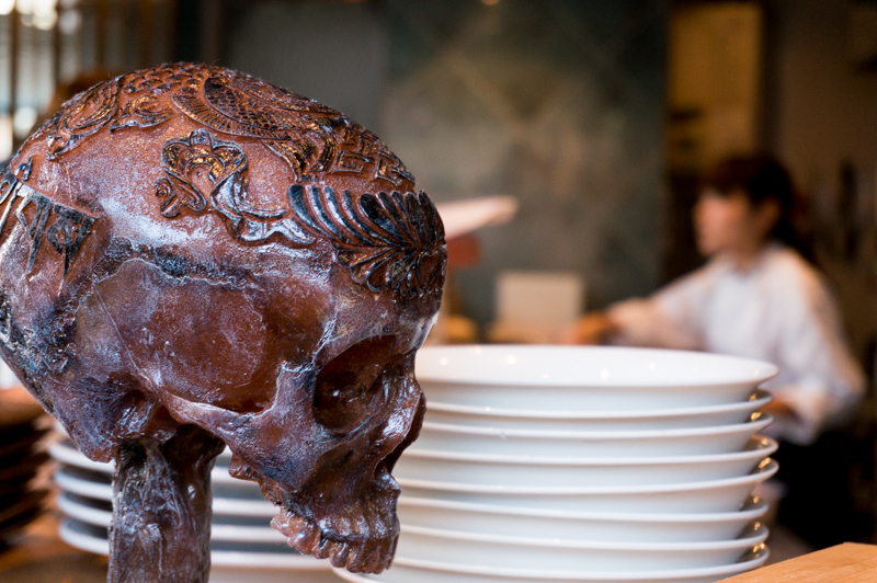 あやしい模様に彫刻された頭蓋骨の奥では・・・