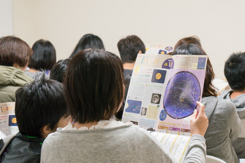 参加者はお母さん(お父さん)と子どもさんという親子での参加が多い様子でした。子どもさんは赤ちゃんから中学生くらいまでと幅広い年代の参加で、星・月への関心の高さが伺えました。