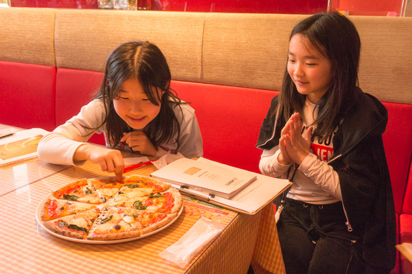 ピザまわしをしているみさきちゃんの笑顔の瞬間を撮影!