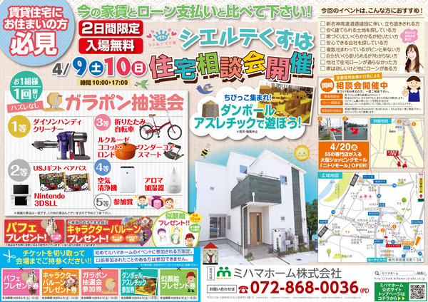 ミハマホーム株式会社の「シエルテくずは」で4/9(土),10(日)に開催されるイベント![]()