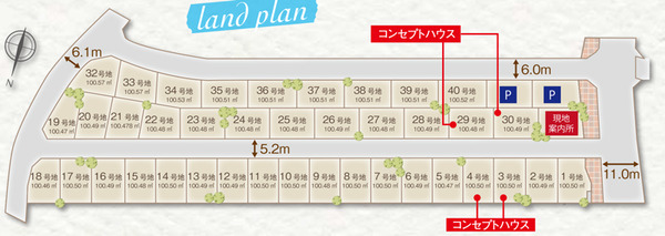 手前の4邸がコンセプトハウスです。無料駐車場あり。