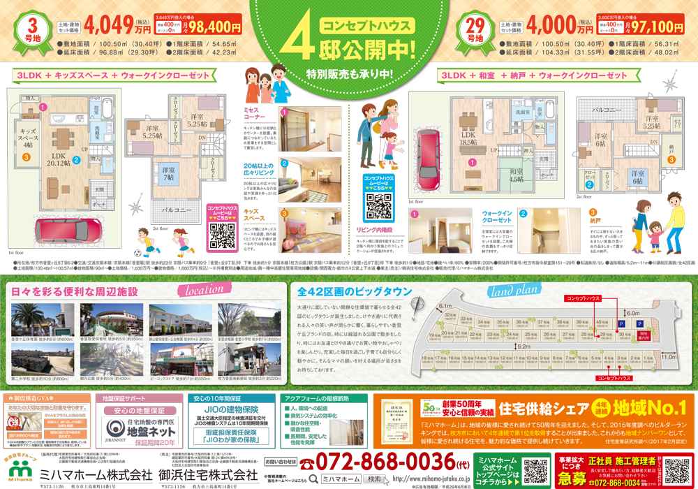 ミハマホームには枚方市内に2,000〜3,000万円台の分譲地が8カ所あります!