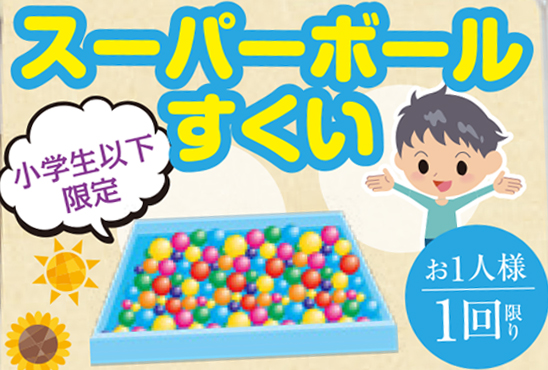 今回はちびっこが大好きなスーパーボールすくいとかき氷プレゼントをやりますよー!