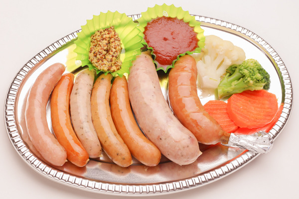 ソーセージ、チキン、ベーコンのボリューム満点のプレート。