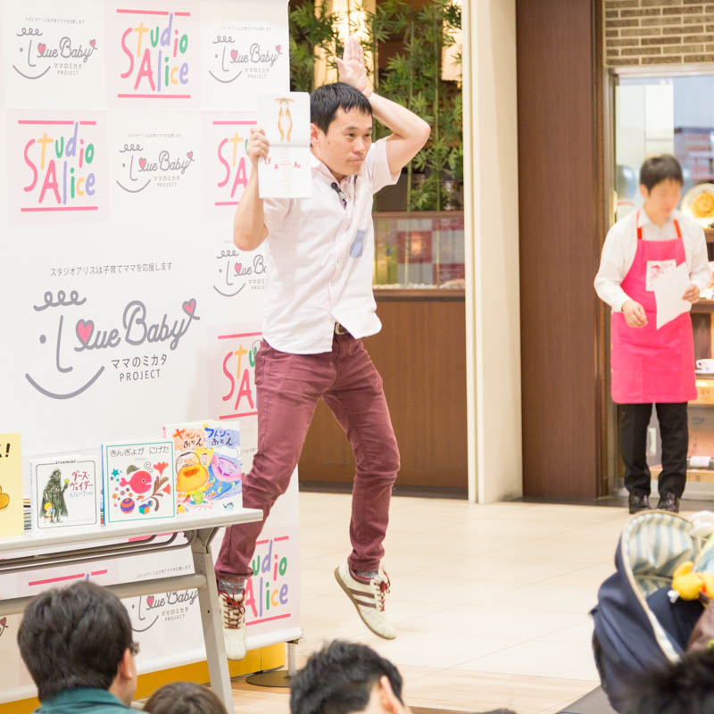 絵本に合わせて和田さんもぴょ〜〜ん!