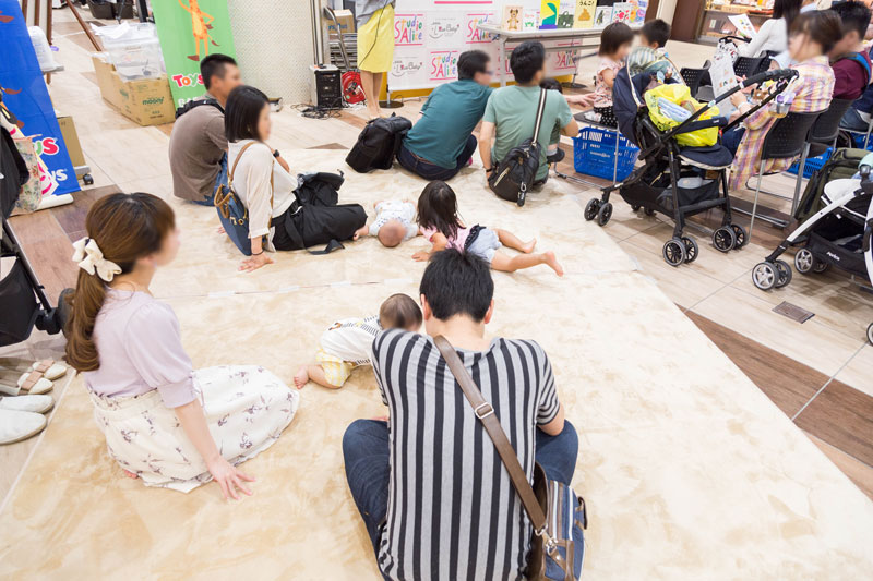 会場にはカーペットが敷かれたスペースもあったので子どもたちと一緒に遊びながらゆっくりと参加することができました。