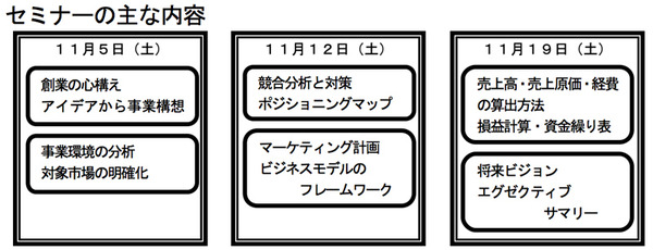 など、この「創業塾」では、基本的なビジネスモデルの確立から、マーケティング計画、利益計画、そして資金計画の作り方までを一貫したストーリーをもって解説されます。
