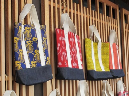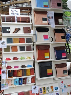 色鮮やかな革(たぶん)バッグ。お店の名前わすれました