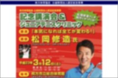 あの松岡修造さんが枚方総合体育館(→地図)で講演会&テニスクリニックをするそうです。