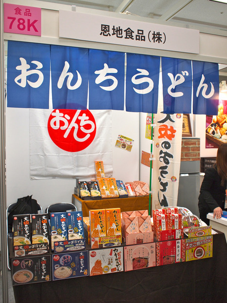 あ~おんちかった!でおなじみの恩地食品株式会社。大阪の新定番として常温で販売・保存できる商品を開発されたそうです。切り口のま~るいもっちりとした半生の「大坂のおうどん」や、ビリケンさんとコラボした「カレーおうどん」、たこ昌とコラボした一番右の「たこ焼おうどん」など、気になるおうどん目白押し!