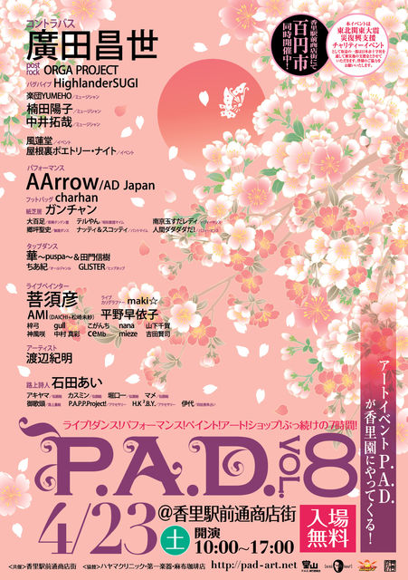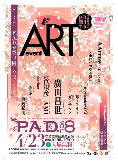 明日4月23日に香里園駅前通商店街でアートイベント「P.A.D. vol.8」(パッド)が開催されるそうです。
