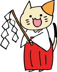 なのでみっけ市のマスコット、三毛猫の「みっけ」は巫女さんのかっこをしてます。