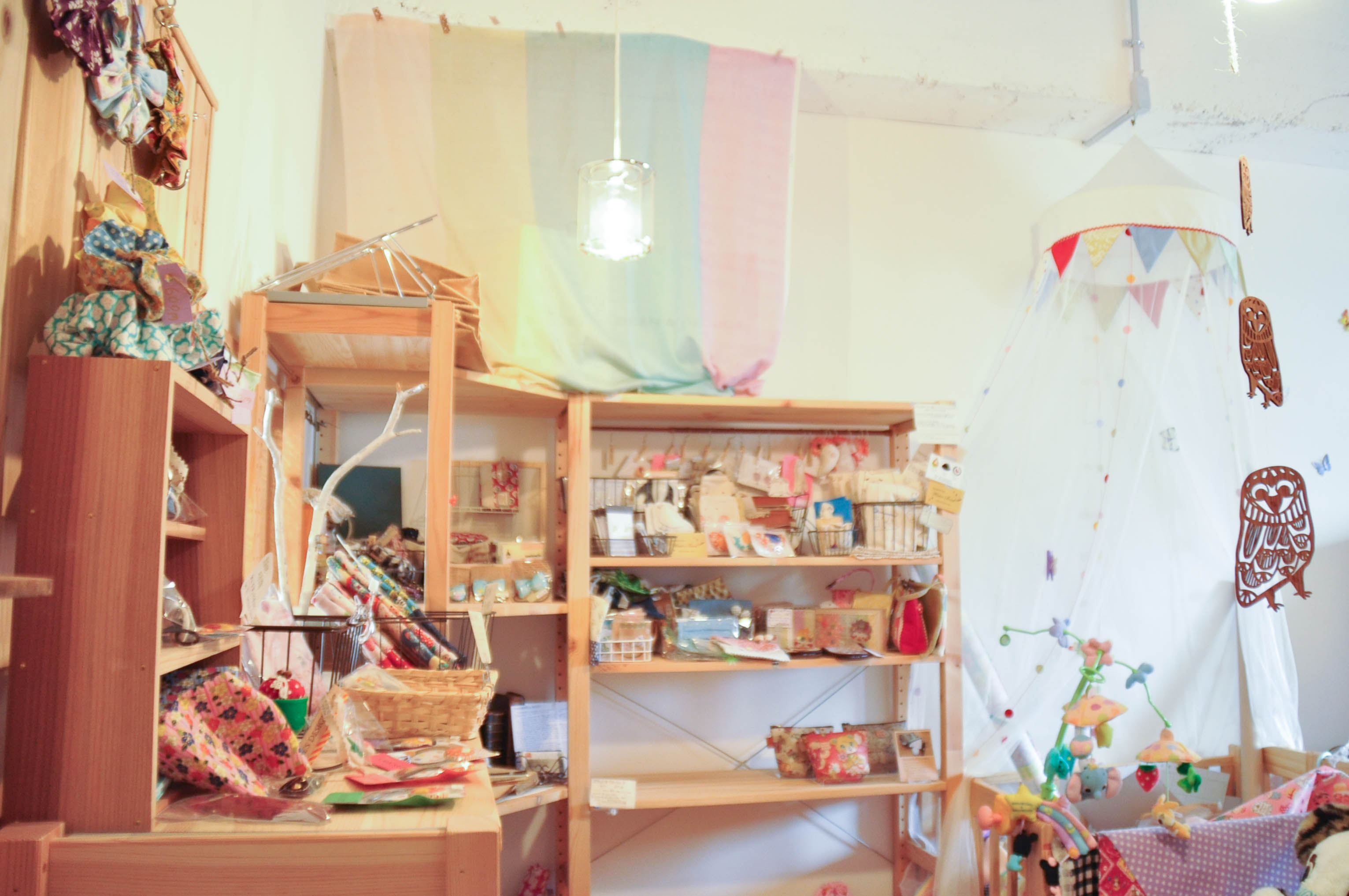 服飾系の専門学校を卒業されて、ネットでハンドメイド雑貨販売をスタート。一人目のお子さんを出産され、子育てと介護をしながら、五六市などでも出店を重ねられて、その後、鍵屋別館での店舗募集を知り応募されたそうです。