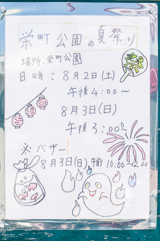 栄町公園の夏祭り | 伊加賀栄町小規模公園 →張り紙 →地図 |