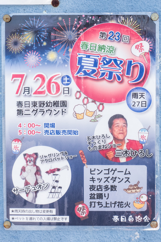 第23回 春日納涼夏祭り | 東香里東野幼稚園 →張り紙 →地図 |