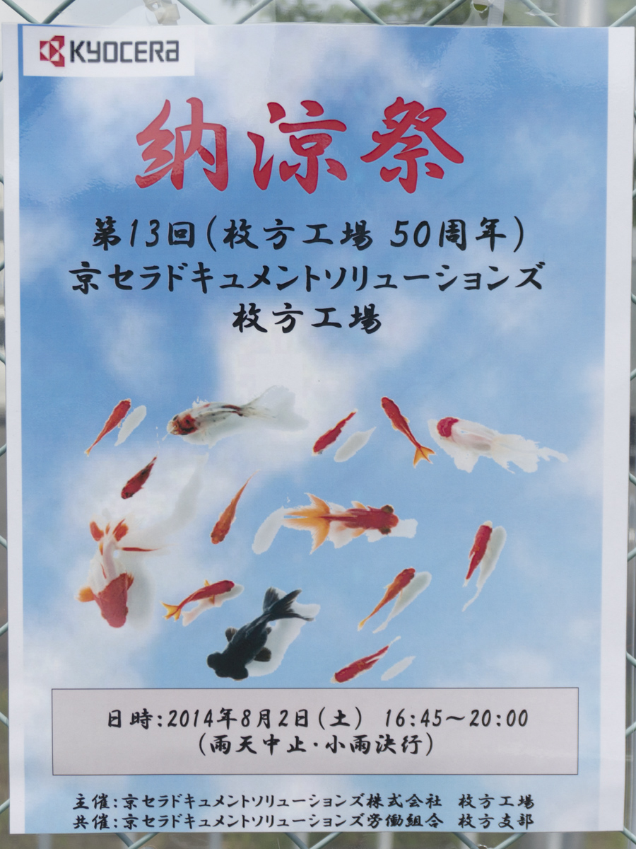 第13回 京セラドキュメントソリューションズ納涼祭 | 京セラドキュメントソリューションズ枚方工場 →張り紙 →地図 |