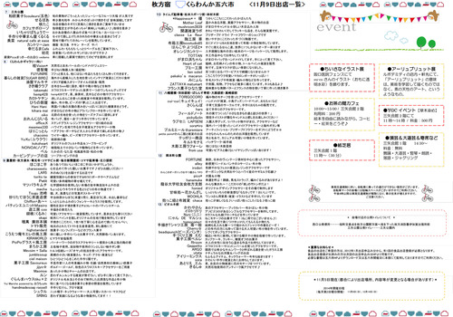 ↓11/9の出店者一覧やイベント情報。クリックで拡大