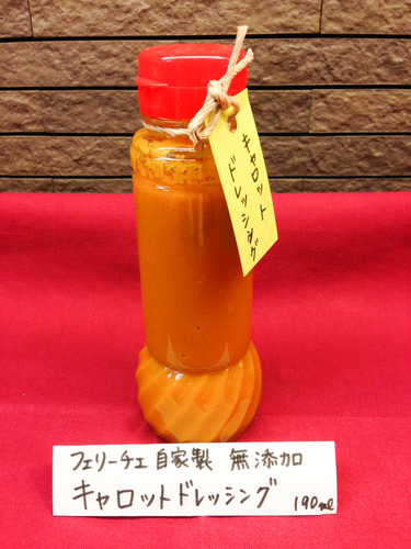CONOBA内に入っているfelice(フェリーチェ)という和洋折衷コース料理のお店では、普段お店でオードブルやシーフードサラダなどに使用されてるフェリーチェ自家製無添加にんじんドレッシングが販売されます![]()