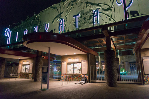 ひらパーに来てから急に思い立って、コナンに出てくる犯人(真っ黒の人影)をやってるつもりです。なんかチープですいません。