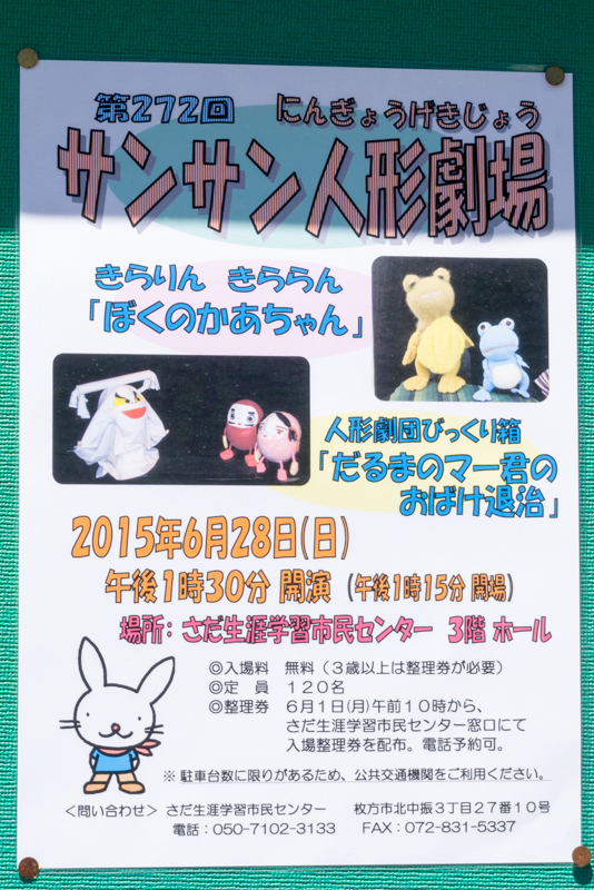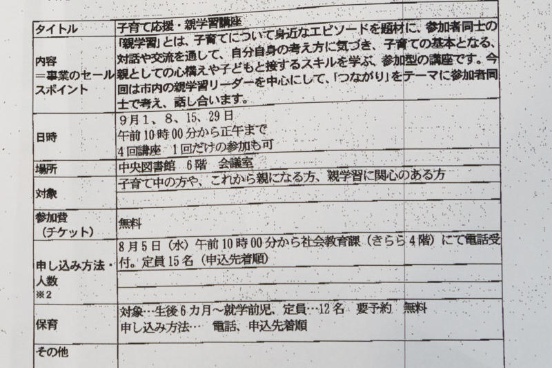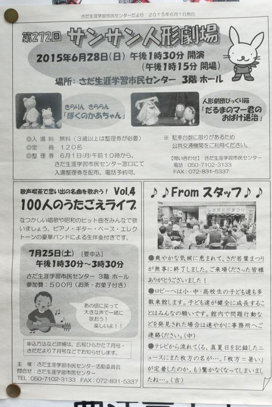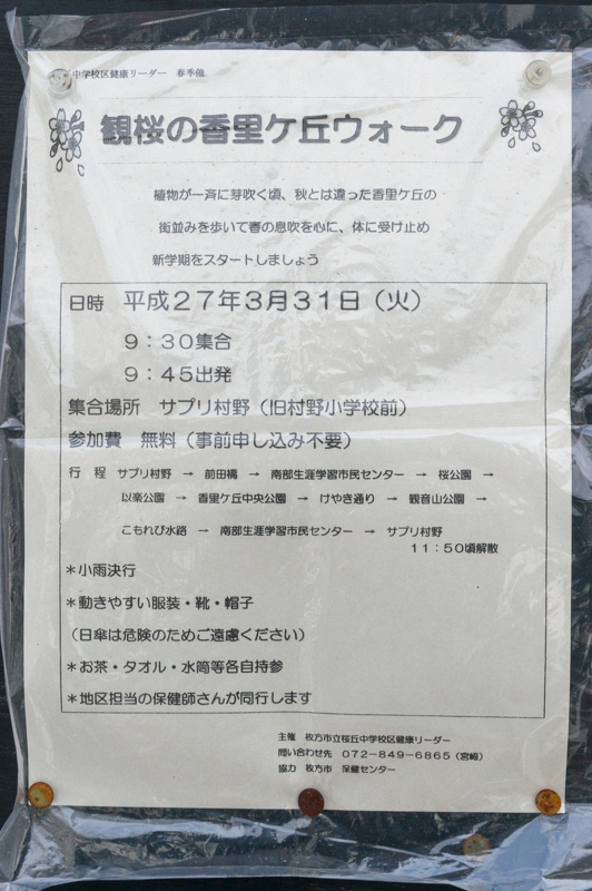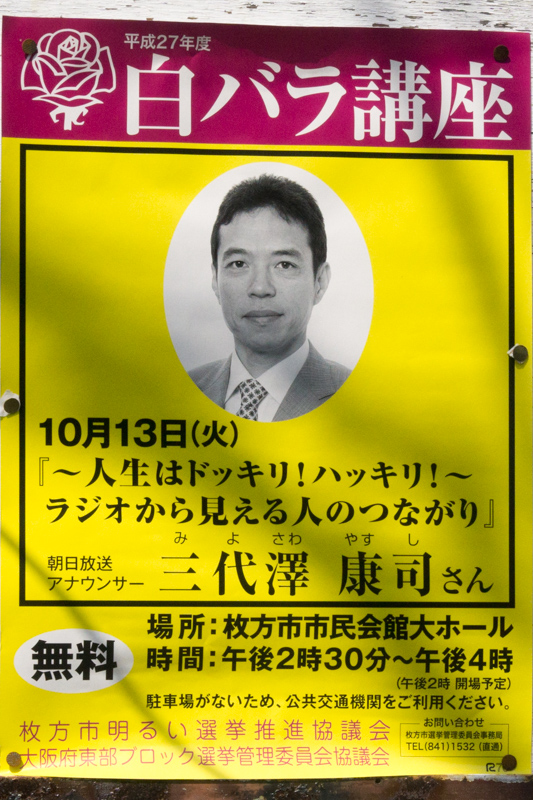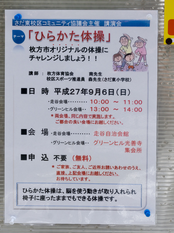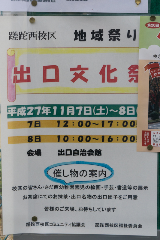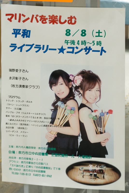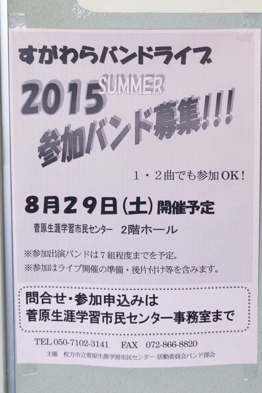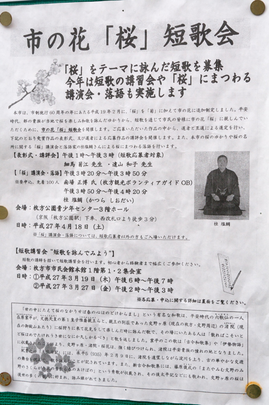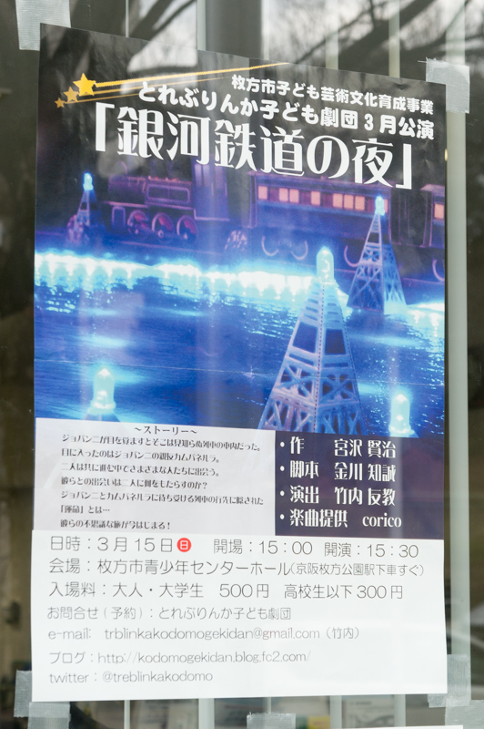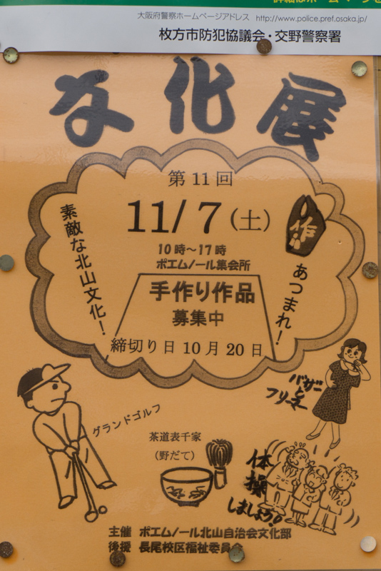 12/2:第4回A O-K Speech Contest(12/4)第22回 ひらかた吹奏楽フェスティバル(1/31)第11回 早春コンサート(2/13)おんがく玉手箱(1/30)劇団四季「コーラスライン」(2/16)アフタヌーンクラシックvol.8 癒やしの音空間(3/6)クリスマスツリーデコレーションコンテスト(12月1〜3週目の土日) 枚方アイデアソン(2/7) 枚方ハッカソン(2/14) 宇宙航空研究開発機構(JAXA) 研究員の今井 弘二さんによるお話会(12/13) 追加