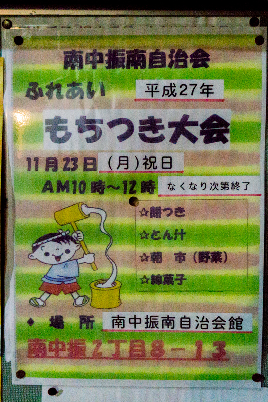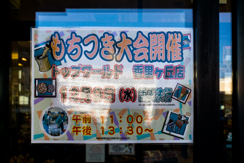 12/4:年末恒例 餅つき大会(12/6)防災訓練(12/6)新鮮野菜の直販(12/26)もちつき大会(12/6)冬のコウメカーニバル(12/13)追加