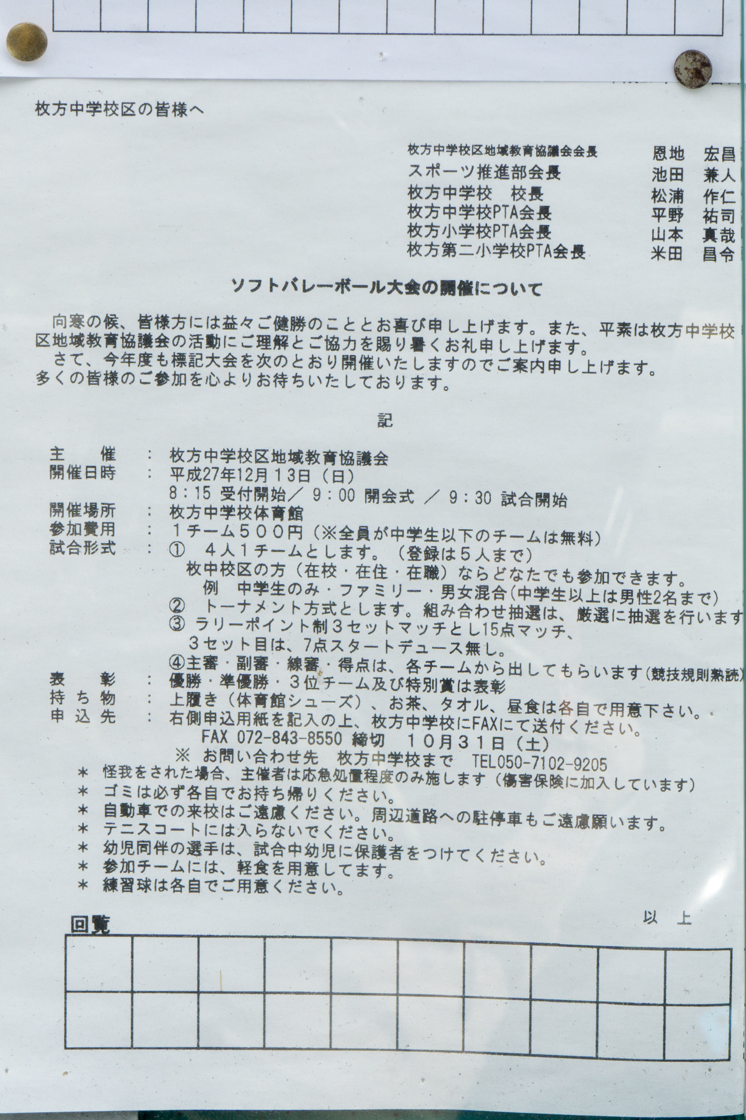 ・ウィズネット開催 ソフトバレーボール大会 楠葉西中学校